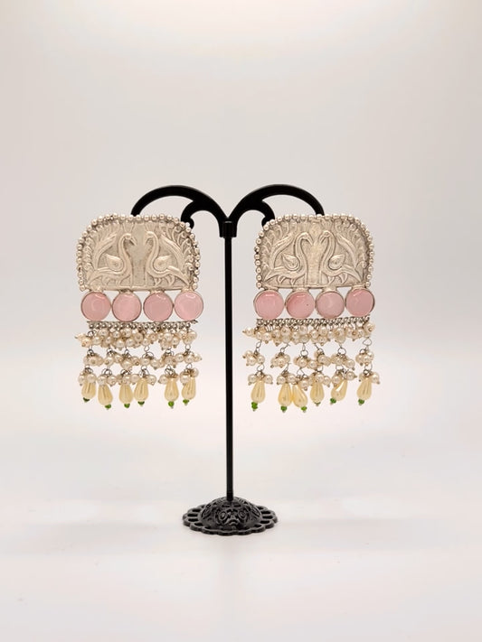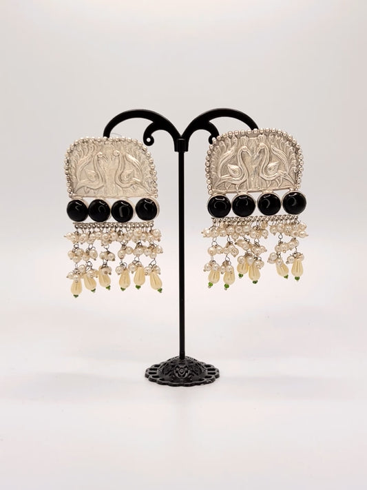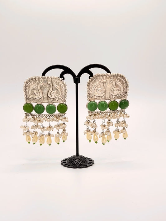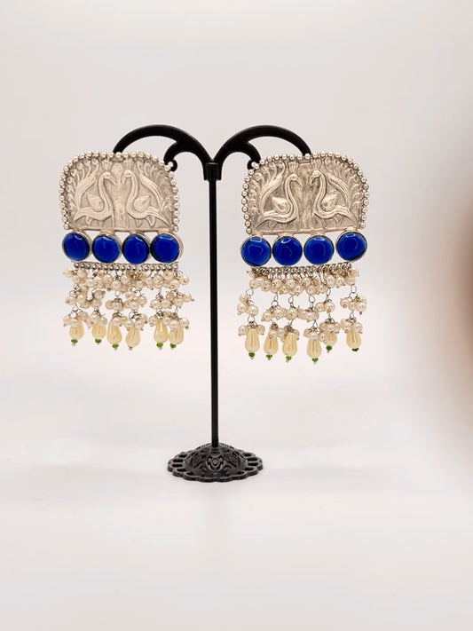 Ranjana Love Birds earrings with Aqua Marine Stones