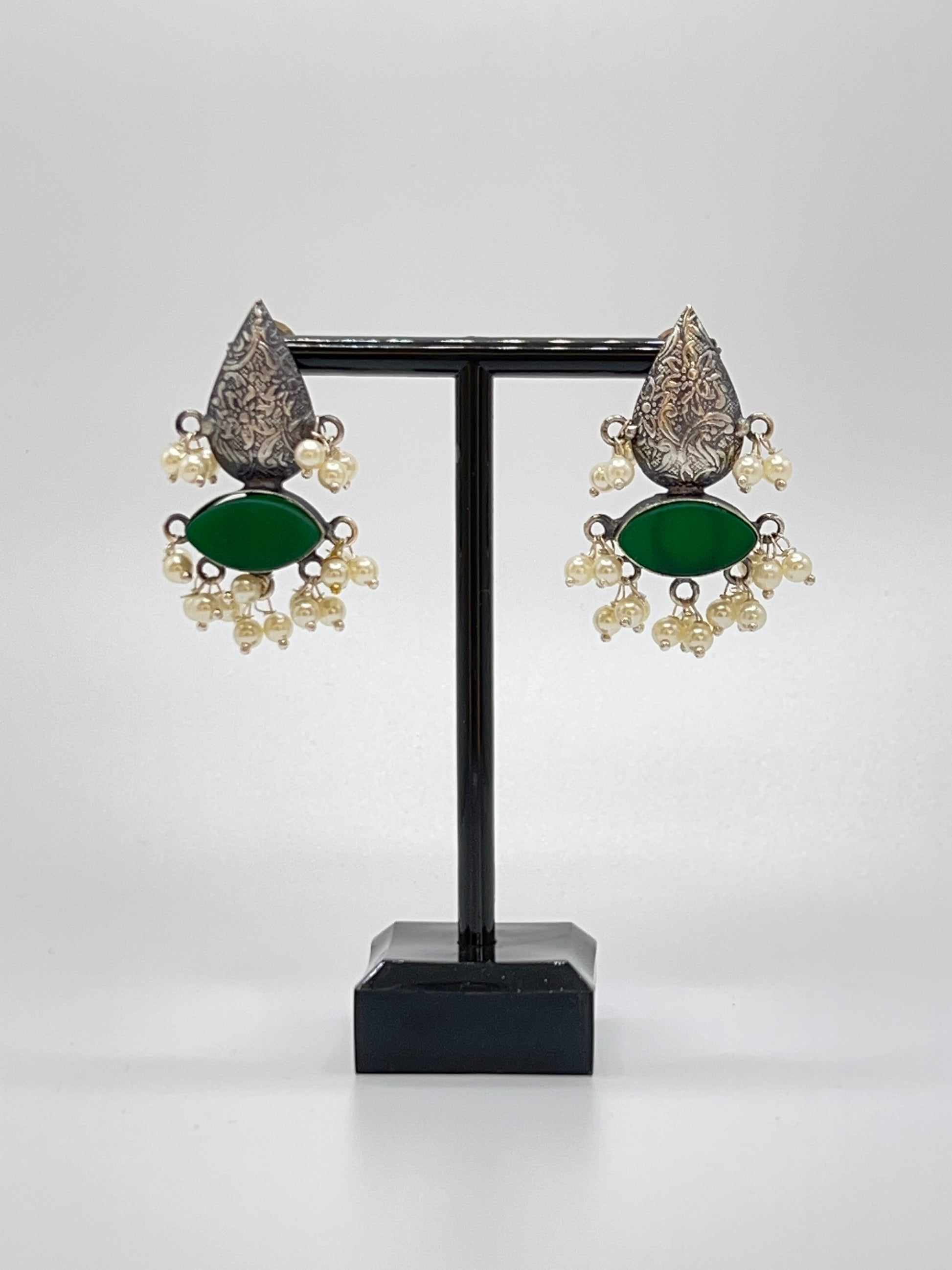 Elevate your style with our Silver Handcrafted Large Stone Earrings. These light weight pieces are a stunning blend of classic elegance and modern design, making them the perfect addition to any jewelry collection. The intricate details and handcrafted finish of each earring give them a unique and premium look. Whether you're looking for a statement piece or a timeless classic, our Silver Handcrafted Large Stone Earrings are the ideal choice for any occasion. Add sophistication and style to your look with these super classic earrings, crafted with passion and available now at Mehar Designs.
