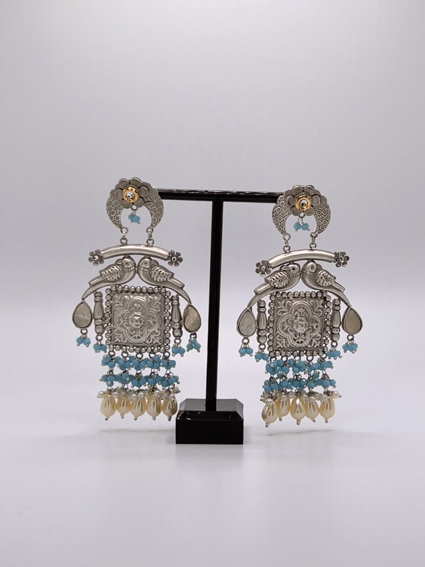 Elevate your style with our Silver Handcrafted Large Stone Earrings. These light weight pieces are a stunning blend of classic elegance and modern design, making them the perfect addition to any jewelry collection. The intricate details and handcrafted finish of each earring give them a unique and premium look. Whether you're looking for a statement piece or a timeless classic, our Silver Handcrafted Large Stone Earrings are the ideal choice for any occasion. Add sophistication and style to your look with these super classic earrings, crafted with passion and available now at Mehar Designs.