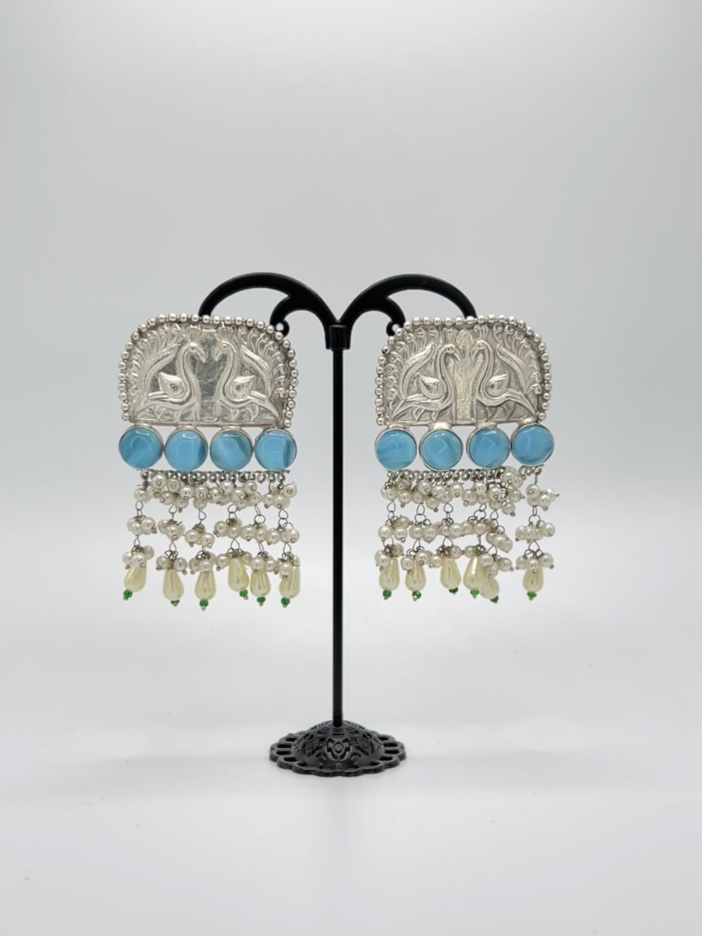 Ranjana Love Birds earrings with Aqua Marine Stones