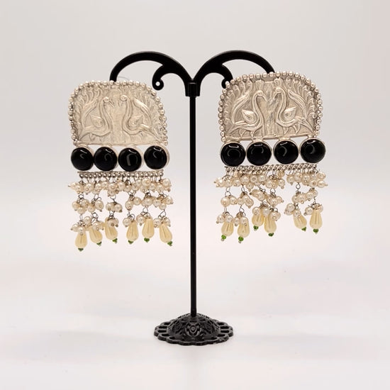 Elevate your style with our stunning silver pearl Imitation statement earrings. Featuring delicate dangling pearls and sparkling Kundan stones, these earrings are a classic and elegant addition to any jewelry collection. The lightweight design makes them comfortable for all-day wear, while the silver plating adds a touch of sophistication to your look. Whether you're dressing up for a special occasion or simply adding some finishing touches to your everyday look, these earrings are the perfect accessory. Get your pair today and experience the timeless beauty of pearl and Kundan.