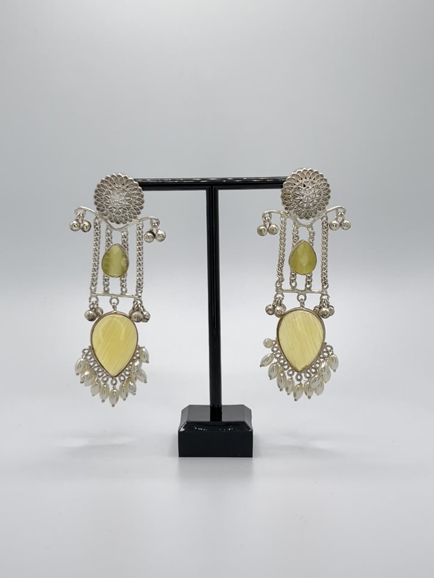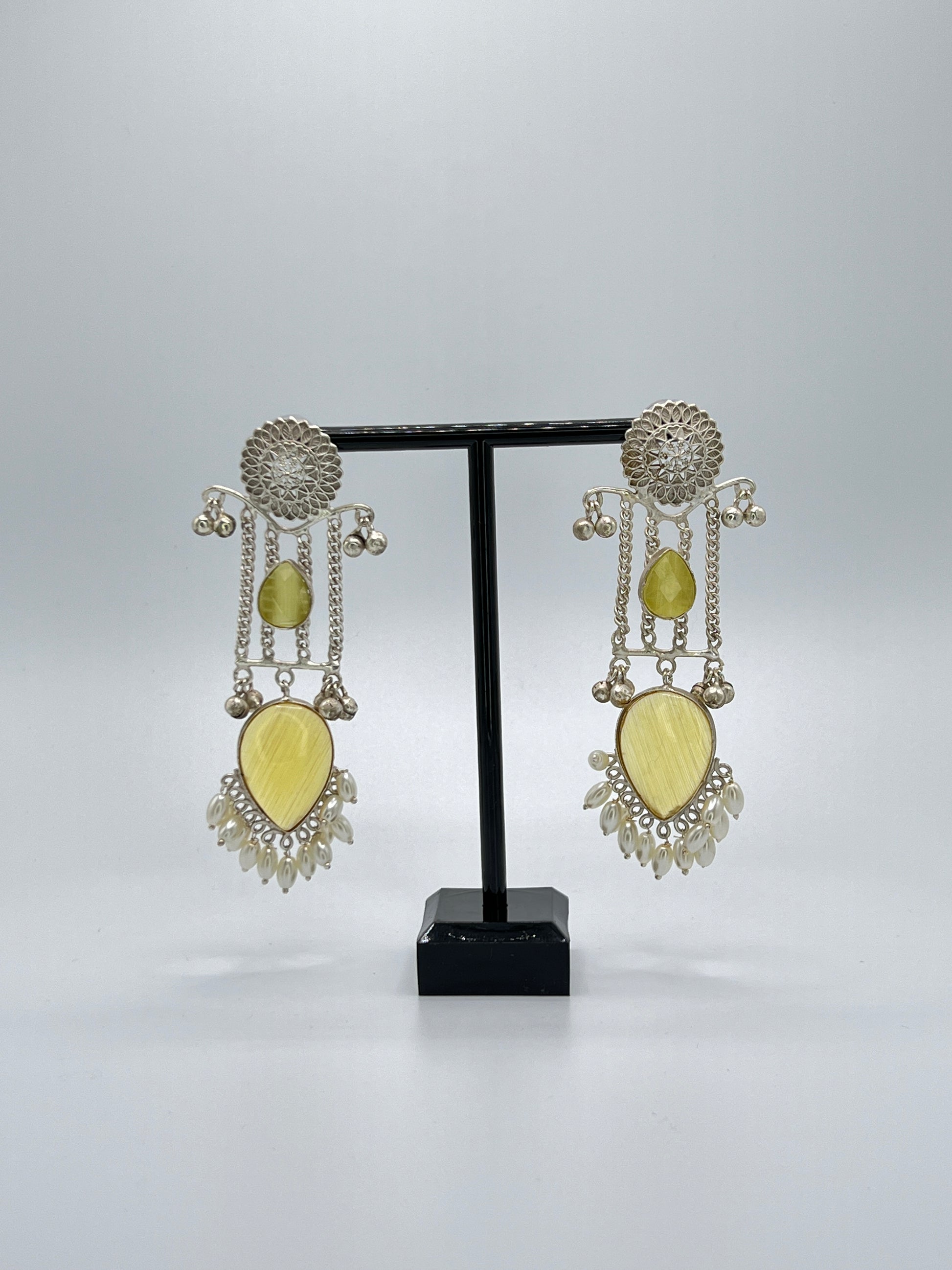 Elevate your style with our Silver Handcrafted Large Stone Earrings. These light weight pieces are a stunning blend of classic elegance and modern design, making them the perfect addition to any jewelry collection. The intricate details and handcrafted finish of each earring give them a unique and premium look. Whether you're looking for a statement piece or a timeless classic, our Silver Handcrafted Large Stone Earrings are the ideal choice for any occasion. Add sophistication and style to your look with these super classic earrings, crafted with passion and available now at Mehar Designs.
