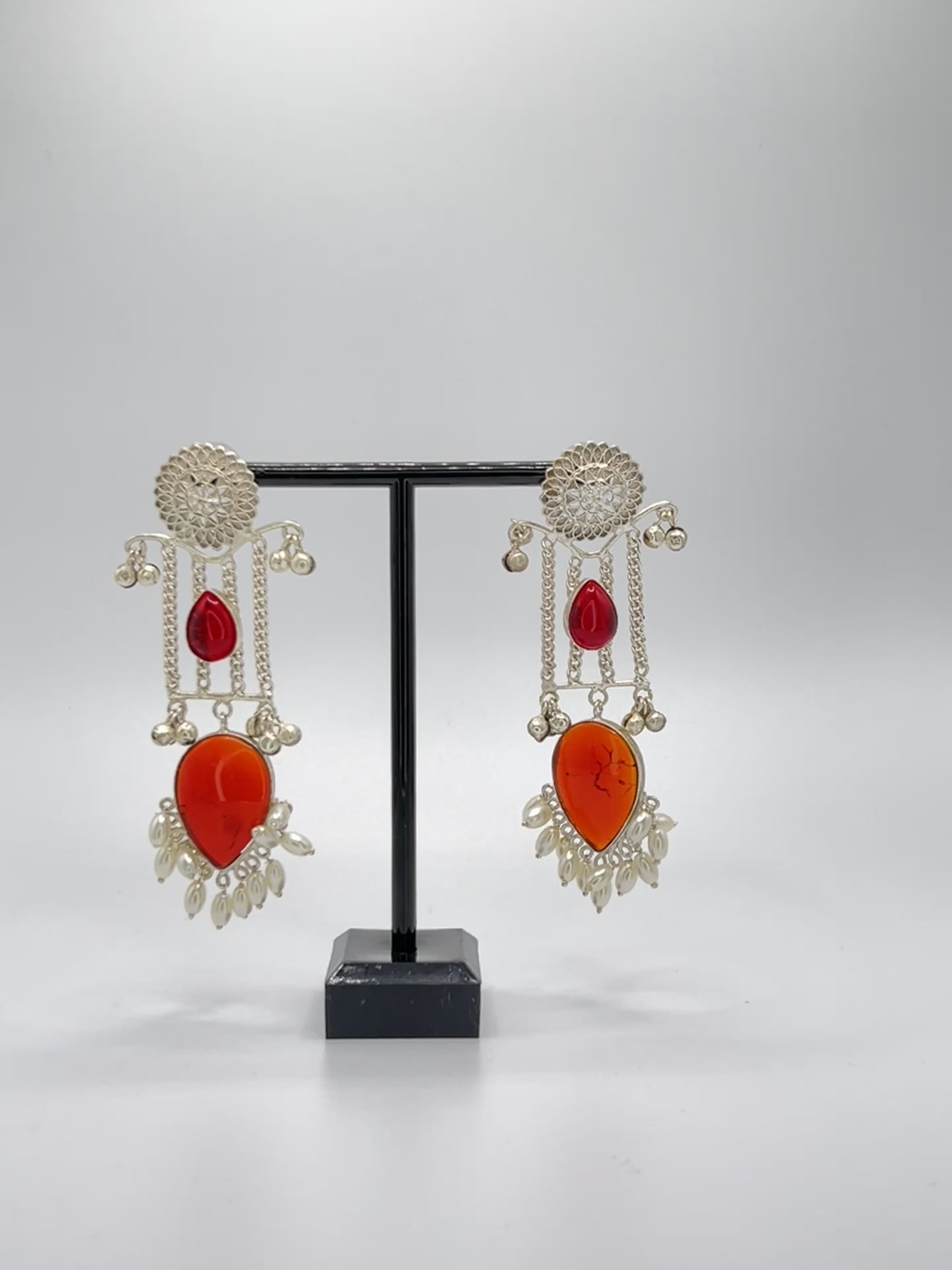 Elevate your style with our Silver Handcrafted Large Stone Earrings. These light weight pieces are a stunning blend of classic elegance and modern design, making them the perfect addition to any jewelry collection. The intricate details and handcrafted finish of each earring give them a unique and premium look. Whether you're looking for a statement piece or a timeless classic, our Silver Handcrafted Large Stone Earrings are the ideal choice for any occasion. Add sophistication and style to your look with these super classic earrings, crafted with passion and available now at Mehar Designs.